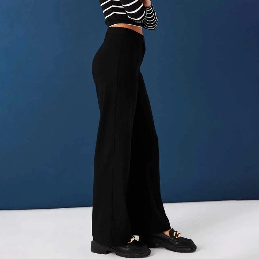 High-waist wide-leg trousers for women, made from breathable woven fabric, relaxed fit, suitable for casual or office wear