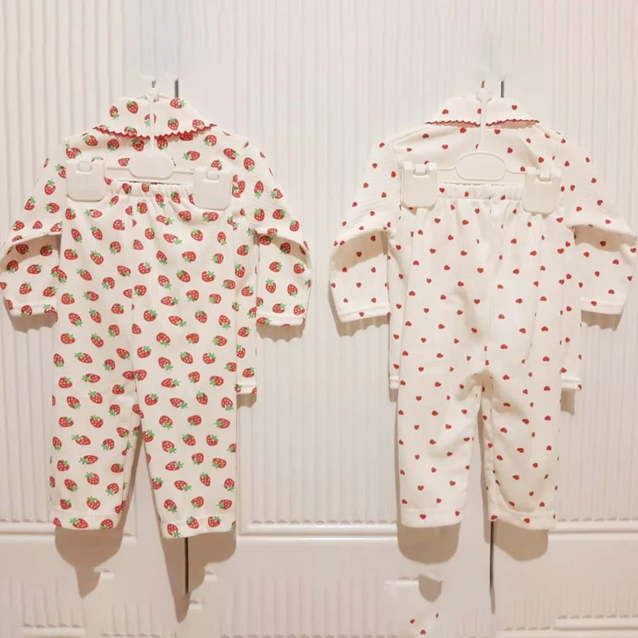 Adorable embroidered pajama set with strawberry and heart patterns, made for newborn comfort