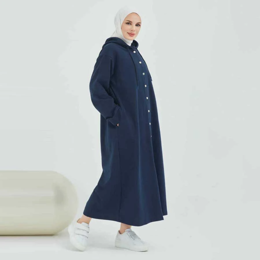 Stylish front-buttoned hijab cap in navy, comfortable and easy to wear daily
