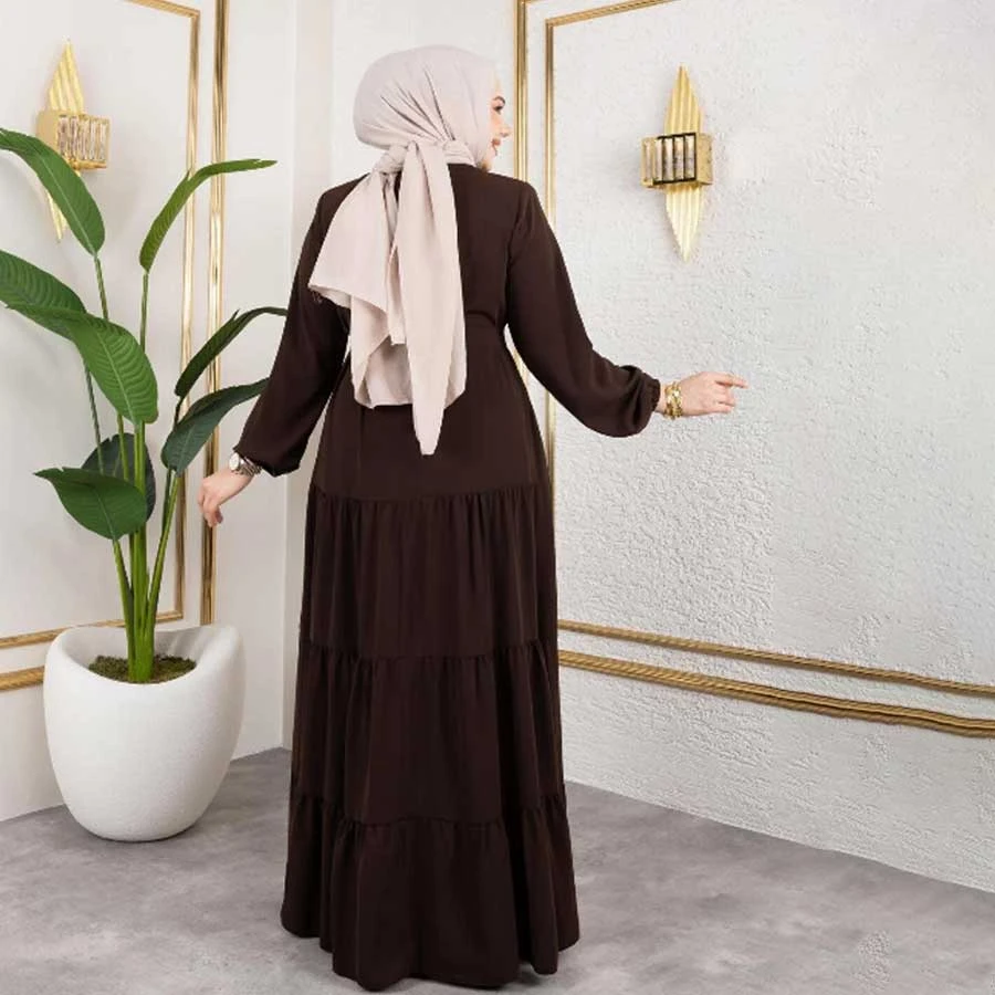 Women’s ferace in Medina silk with a 3-layer gathered design, perfect for stylish and comfortable daily wear
