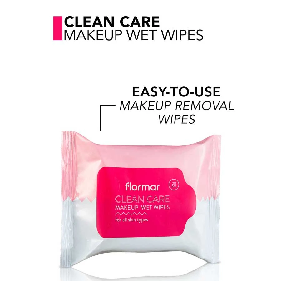مناديل فلورمار كلين كير المبللة لتنظيف الوجه والعينين بشكل عملي، تزيل المكياج تمامًا دون ترك طبقة دهنية أو بقايا على الوجه.