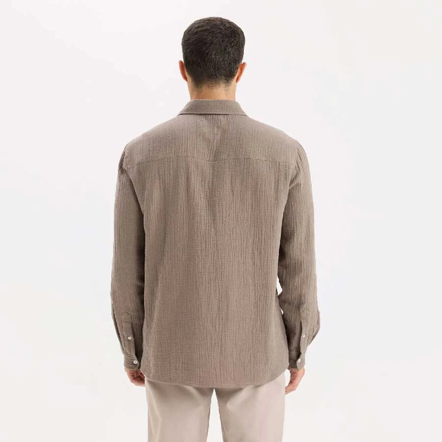 Defacto 100% Cotton Regular Fit Polo Neck Muslin Long Sleeve Shirt