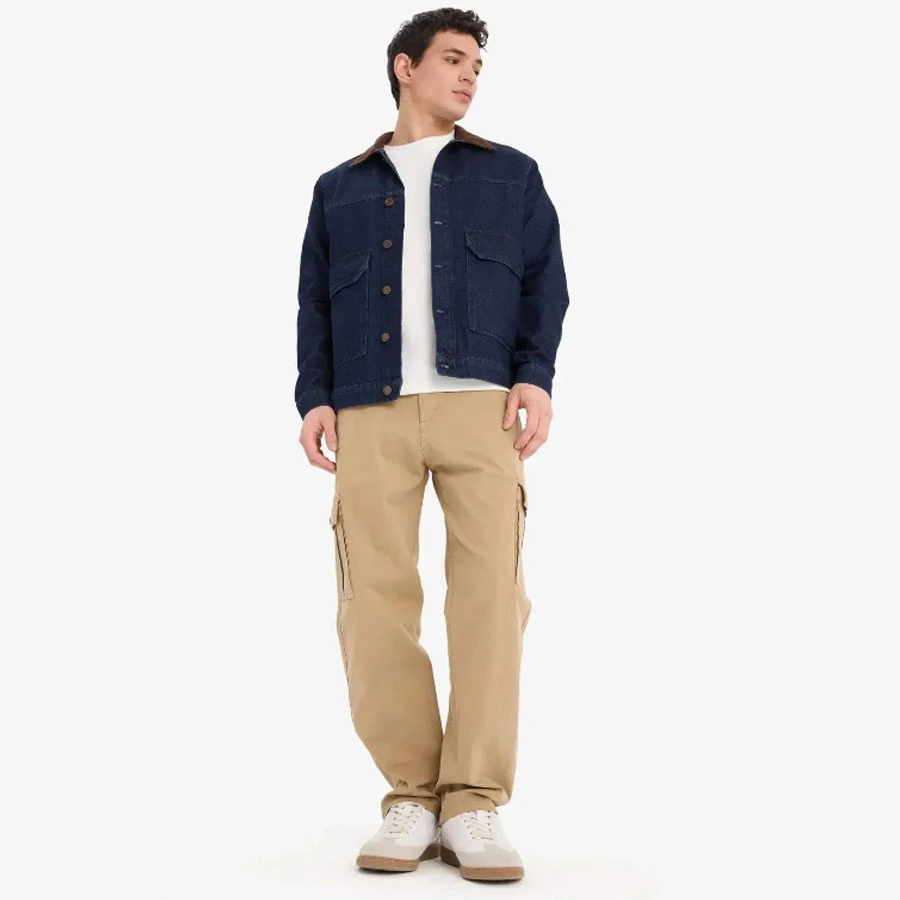 Defacto 100% Cotton Slim Fit Contrast Collar Seasonal Spring Jean Jacket