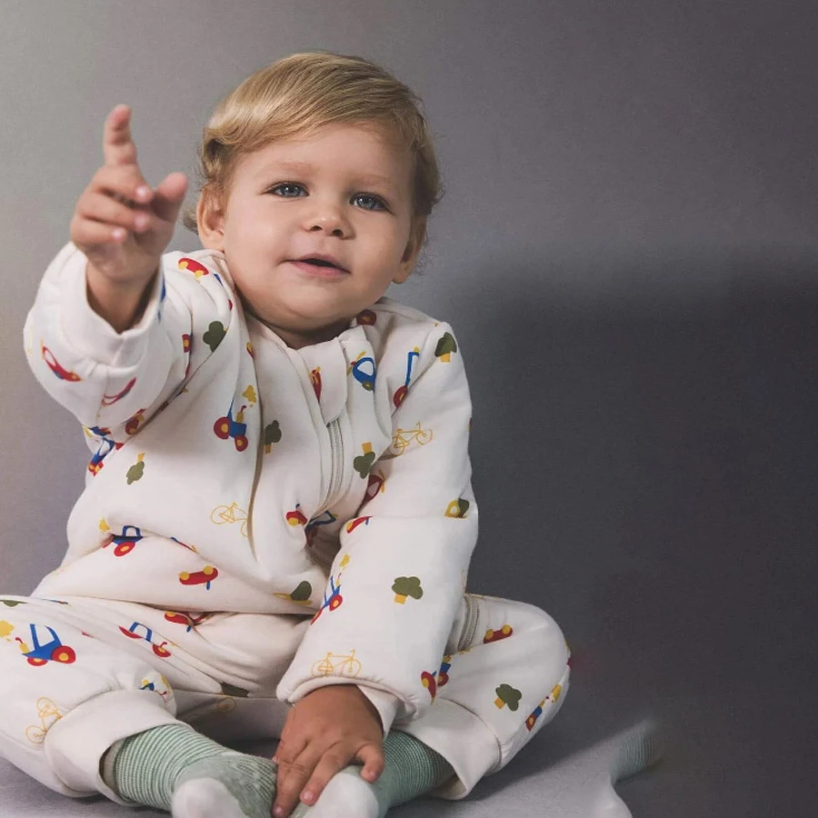 Defacto Baby Boy 1.6 Tog Fiber Vehicle Printed Combed Cotton Long Sleeve Romper