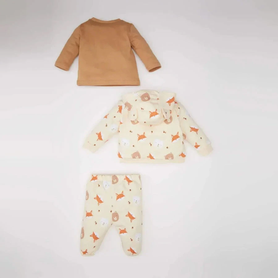 Defacto Baby Boy 3-Piece Set Bear Printed Crew Neck Sweatshirt Hooded Cardigan Elastic Waist Bottom