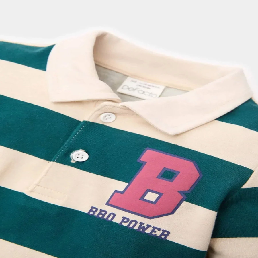 Defacto Baby Boy Collar Striped Printed Sweatshirt Soft Furry