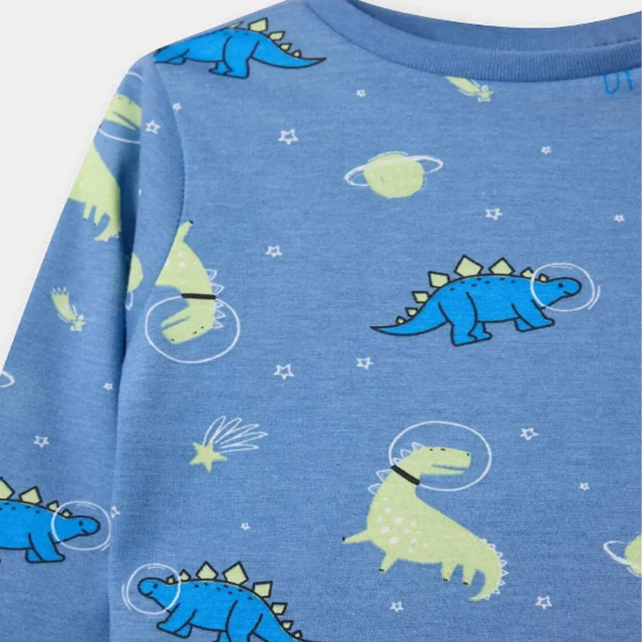 Cozy dinosaur-printed pajamas set for baby boys featuring a long sleeve top and matching long bottoms made from soft combed cotton for comfortable sleep