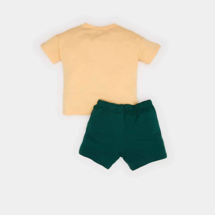Fun Snoopy-themed 2-piece set for baby boys featuring a short sleeve T-shirt and elastic waist shorts made from soft, comfortable fabric