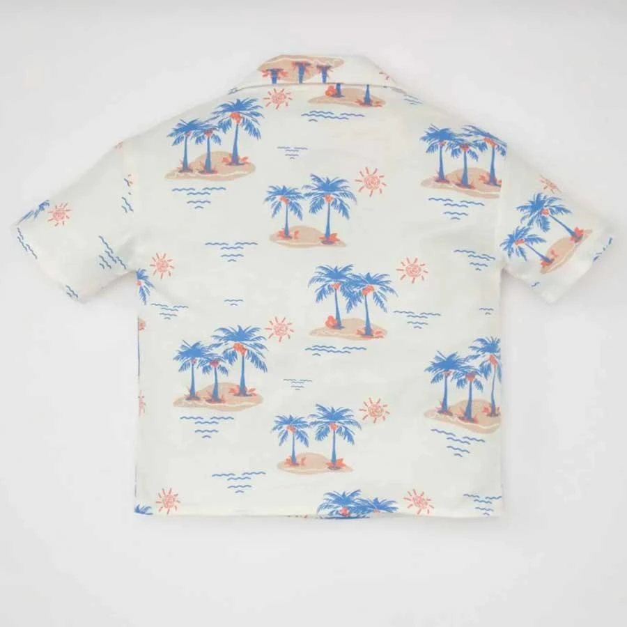 Defacto Baby Boy’s Apas Collar Twill Palm Pattern Short Sleeve Shirt