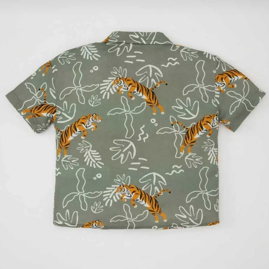 Short sleeve shirt for baby boys featuring an Apas collar and patterned design, made from soft fabric for comfort and everyday wear