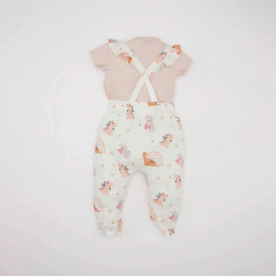 Defacto Baby Girl 2-Piece Set Dinosaur Printed Short Sleeve T-Shirt Waffle Salopet