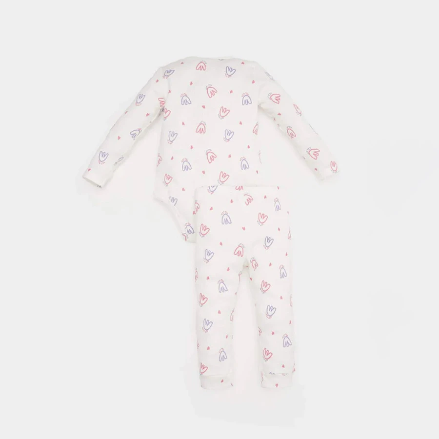 Defacto Baby Girl 2-Piece Set Floral Ribbed Camisole Long Sleeve Snap Body Long Bottom
