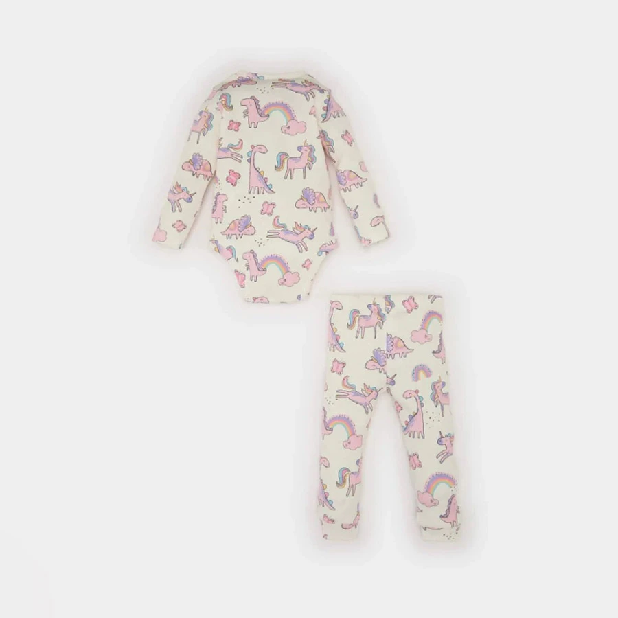 Defacto Baby Girl 2-Piece Set – Leopard Pattern Ribbed Camisole & Snap Fastener Bodysuit with Long Bottoms