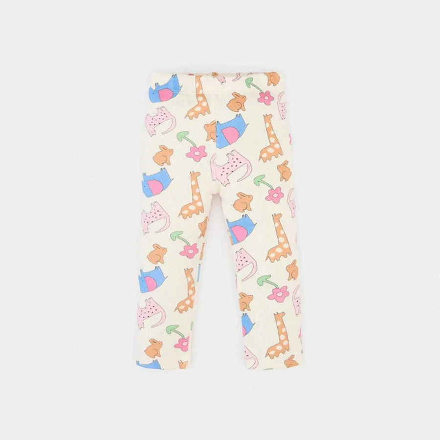 Comfortable ribbed trousers for baby girls featuring a playful animal pattern and soft fabric suitable for daily wear