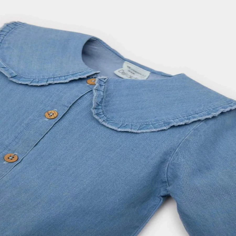 Defacto Baby Girl Big Collar Jean Look Long Sleeve Shirt