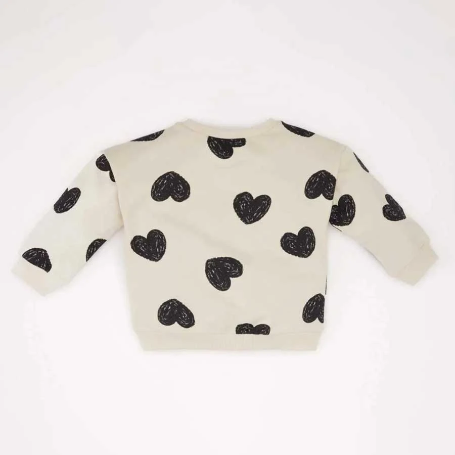 Crew neck sweatshirt for baby girls featuring a heart pattern and soft fabric for warmth and comfort