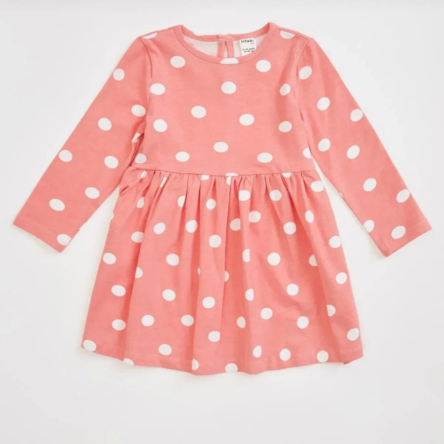 Defacto Baby Girl Crew Neck Polka Dot Long Sleeve Dress