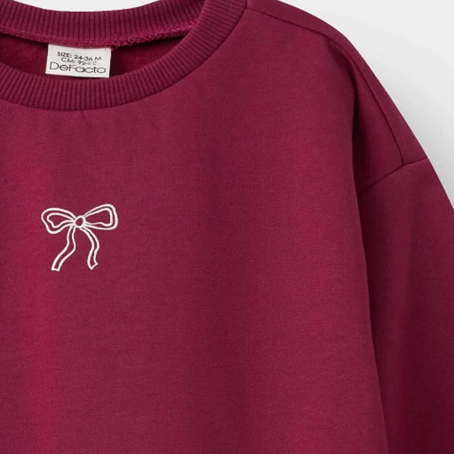 Defacto Baby Girl Crew Neck Soft Furry Printed Sweatshirt
