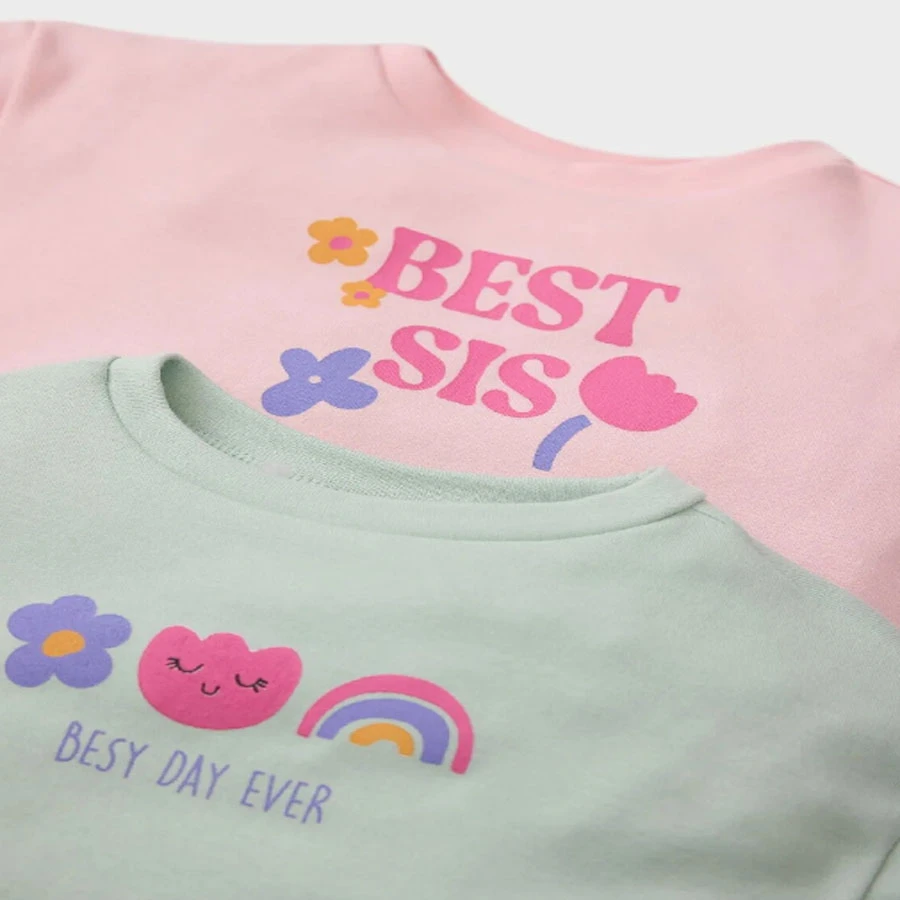 Defacto Baby Girl Newborn Crew Neck Printed 2-Piece Long Sleeve T-Shirt