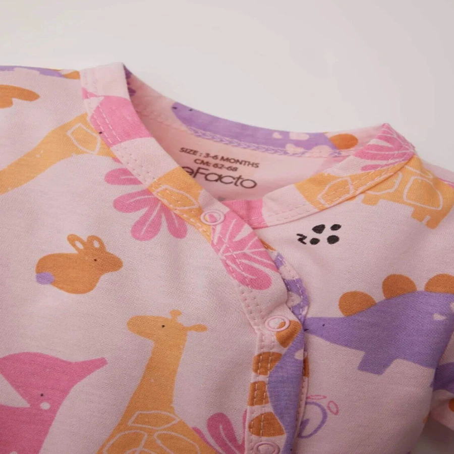 Defacto Baby Girl Newborn Dinosaur Pattern Long Sleeve Combed Cotton Romper