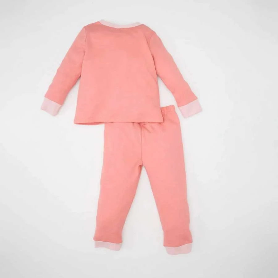 Defacto Baby Girl Pajamas Set Crew Neck Printed Long Sleeve Top with Elastic