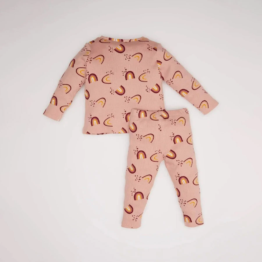 Defacto Baby Girl Rainbow Printed Long Sleeve Ribbed Camisole 2-Piece Pajamas Set
