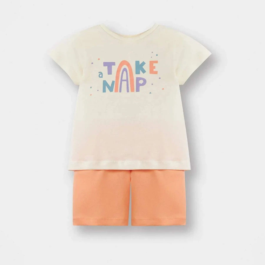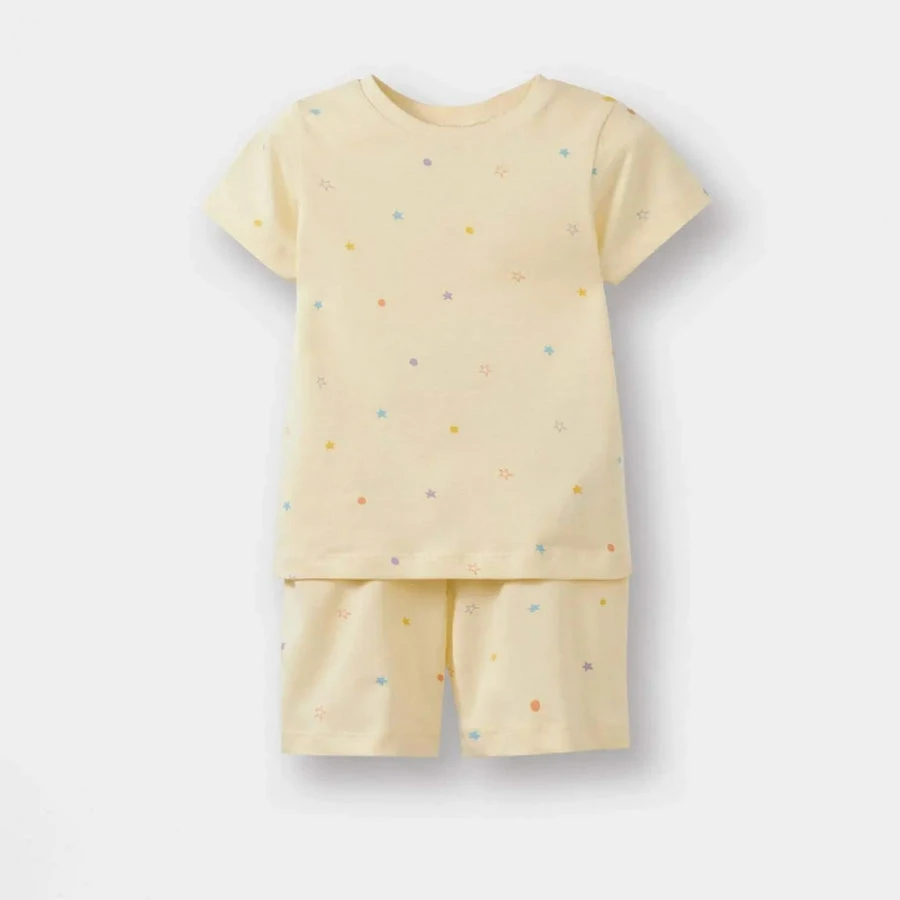 Defacto Baby Girls 4-Piece Pajamas Set Star Pattern Short Sleeve Combed Cotton Top Elastic Waist Shorts