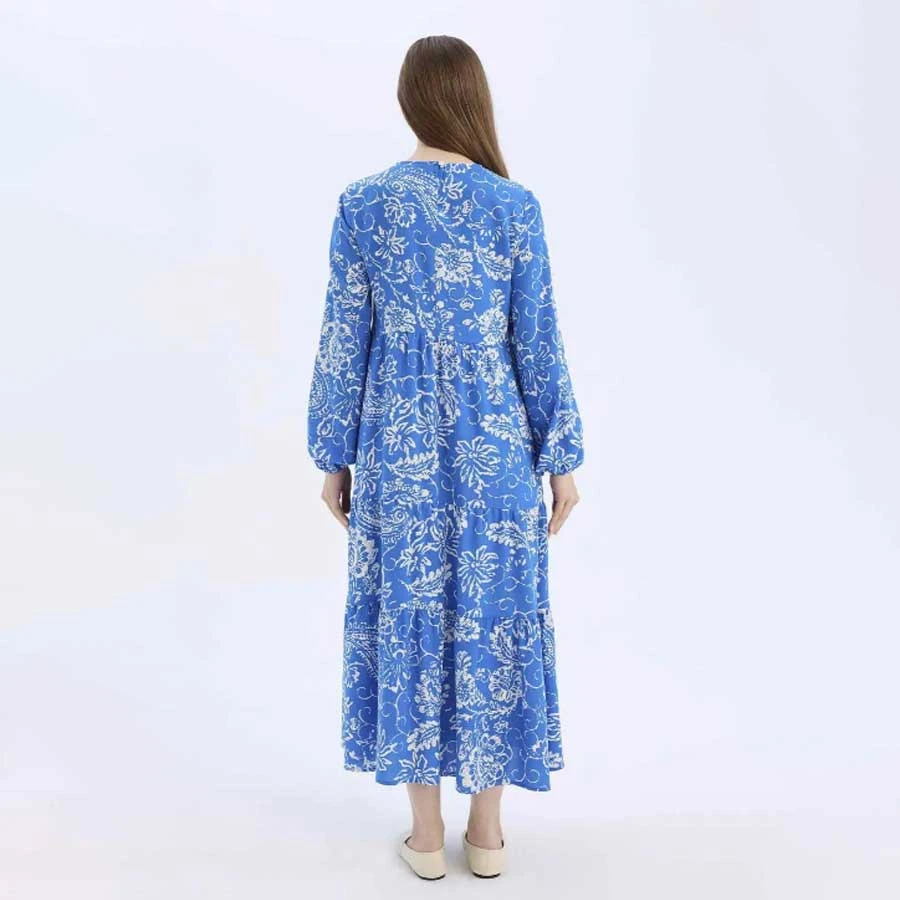 Defacto Crew Neck Patterned Long Sleeve Maxi Hijab Dress