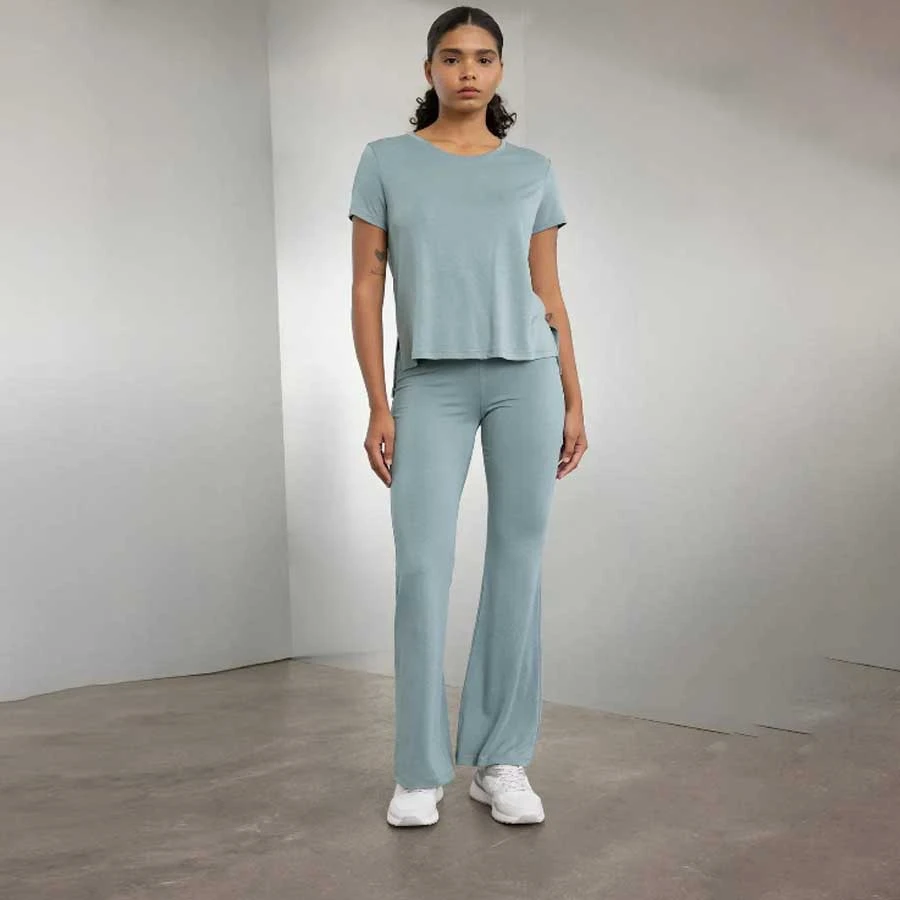 Slim-fit modal pants with a Spanish leg cut, offering a soft touch and a stylish, modern silhouette
