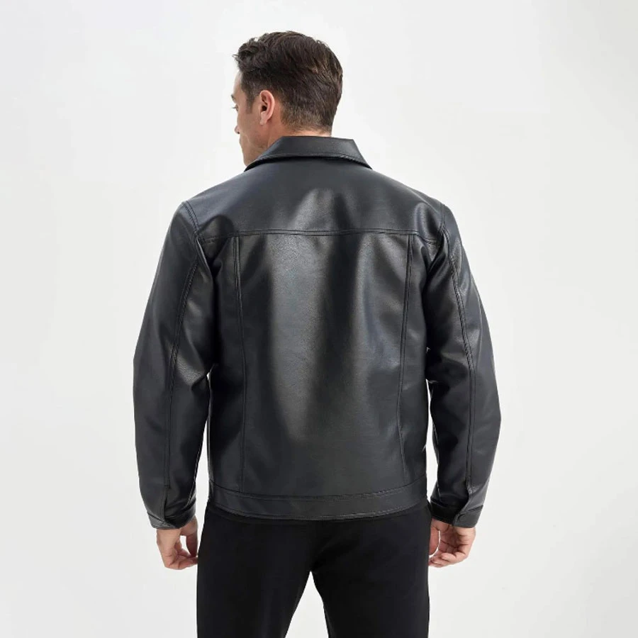 Defacto Faux Leather Slim Fit Coat - Water Repellent, Snap Fastener, Shirt Collar, Pocket
