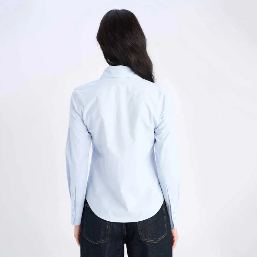 A fitted long sleeve men’s shirt made of soft cotton with a simple basic design, suitable for everyday casual wear