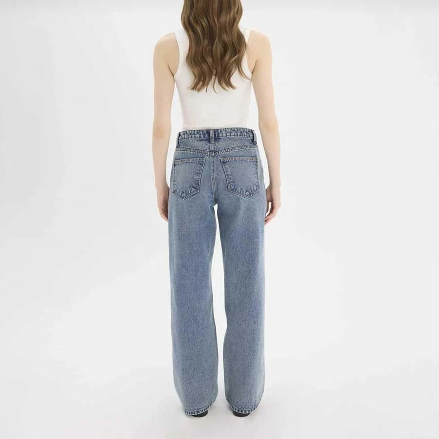 Trendy high-waist denim trousers with a wide-leg, long straight cut — a stylish and versatile wardrobe essential