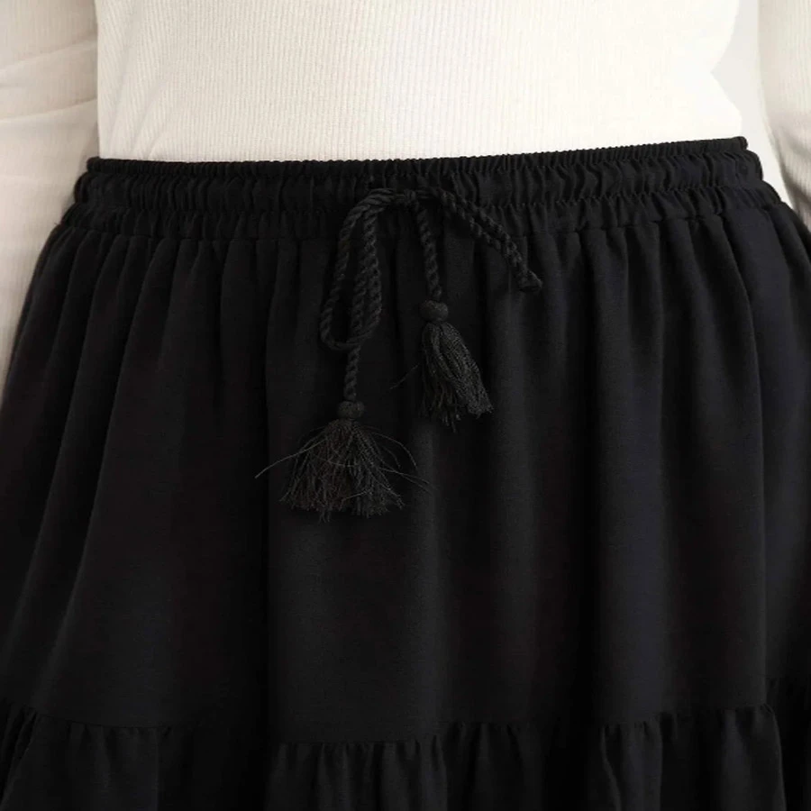 Elegant maxi skirt made from soft viscose fabric featuring a lace-up detail for a stylish and comfortable fit