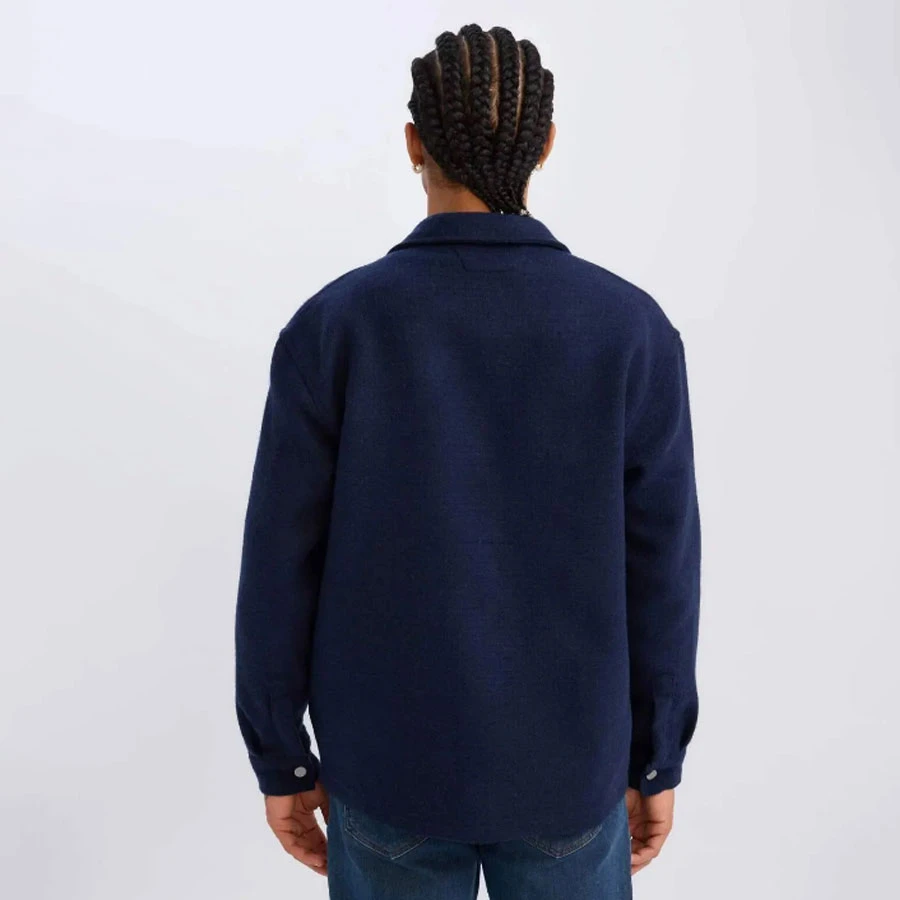 Navy blue regular fit shirt jacket with polo collar and basic plain design, long sleeves