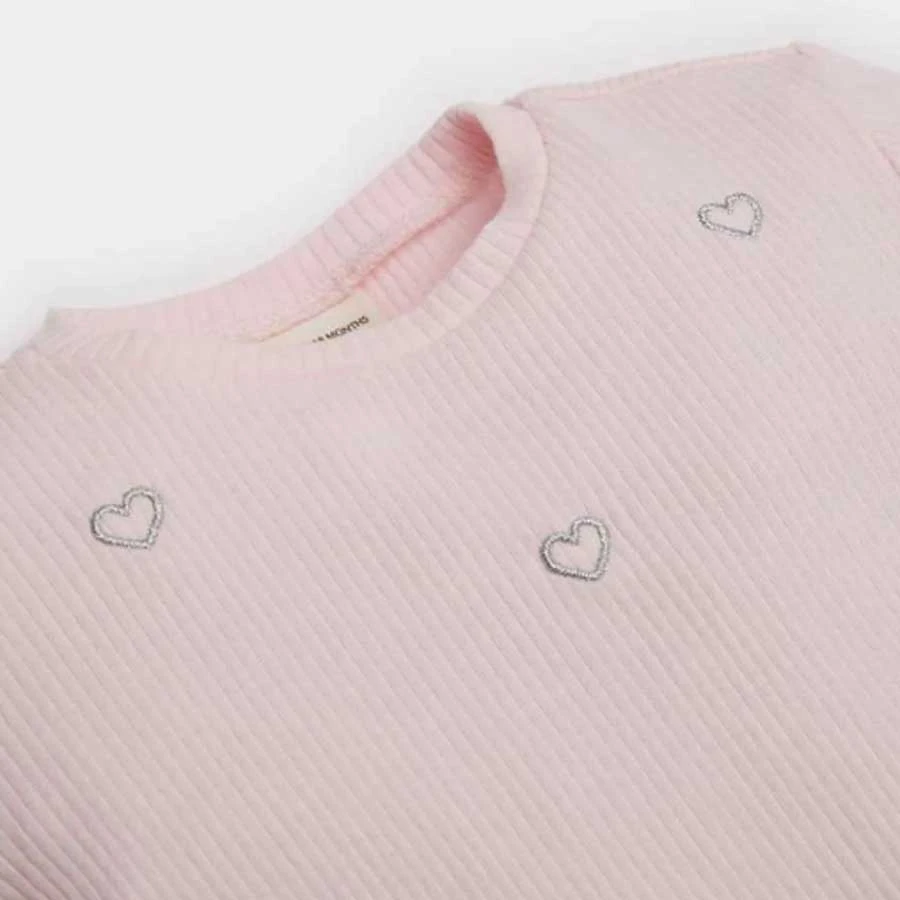 Ribbed short sleeve camisole t-shirt for baby girls with a heart pattern and crew neck, soft and comfortable for everyday wear
