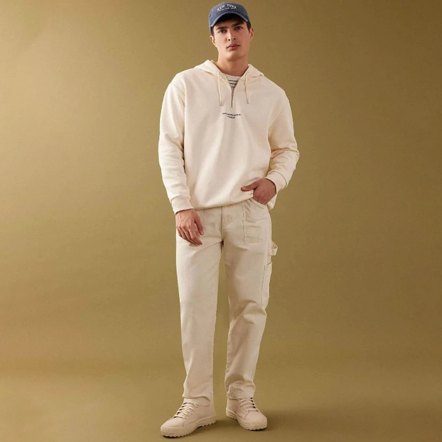 Oversized hoodie with wide fit, zipper detail, and printed back design, perfect for a casual sporty style