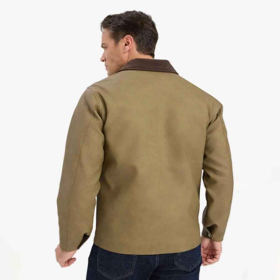 Regular fit faux leather coat with a contrasting collar and zipper closure, combining modern style with functional design