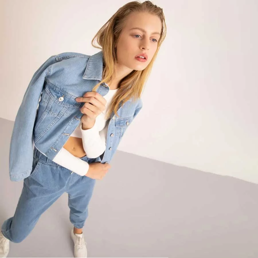 Defacto Regular Fit Cut-Toe Crop Jean 100% Cotton Jacket