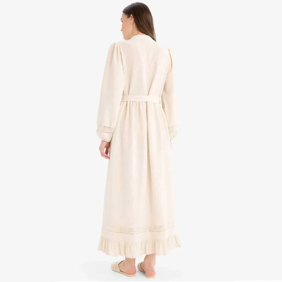 Defacto Regular Fit Judge Collar Belted Linen Blended Long Sleeve Hijab Dress