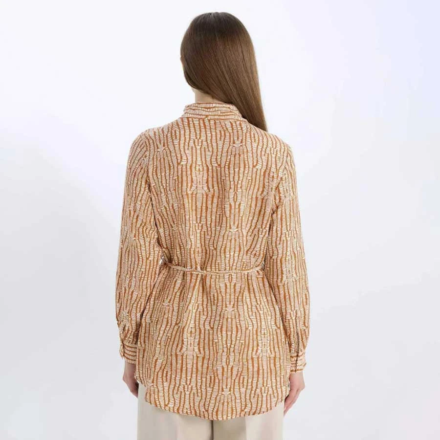 Defacto Regular Fit Patterned Belted Long Sleeve Hijab Shirt Tunic