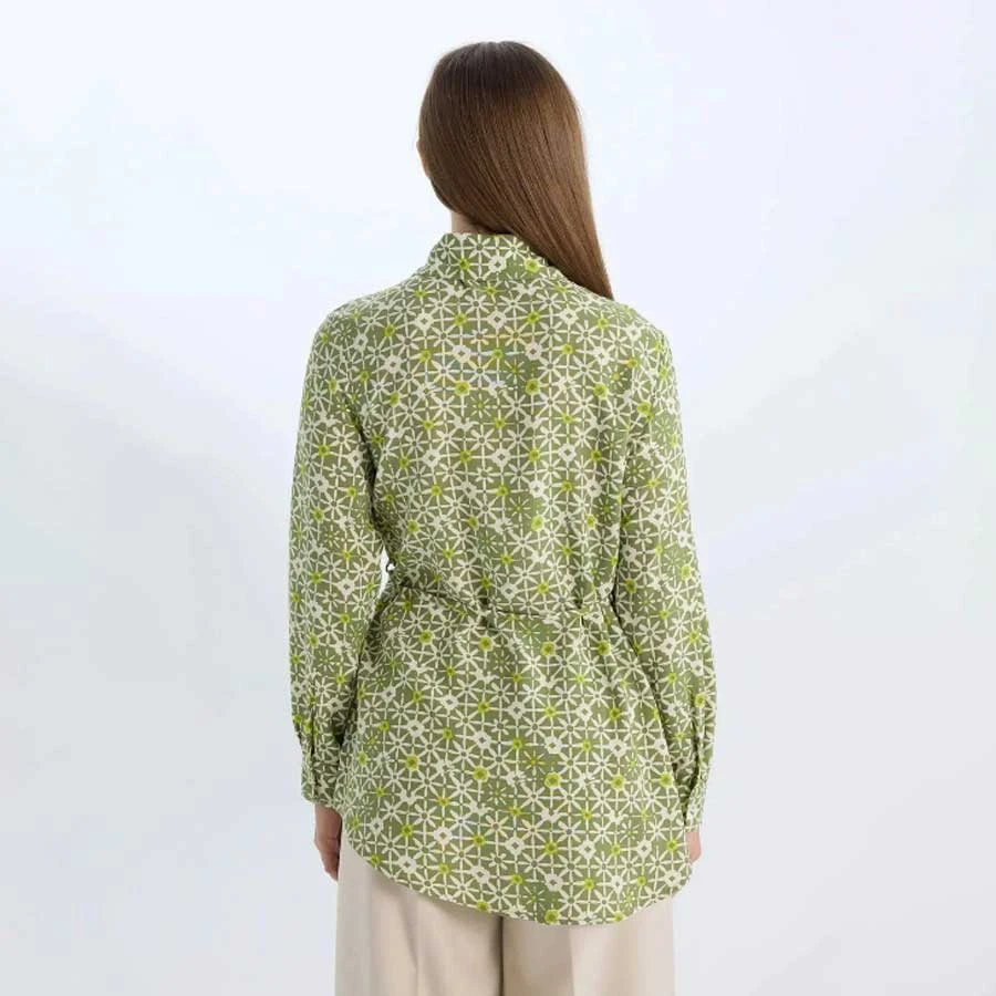 Defacto Regular Fit Patterned Belted Long Sleeve Hijab Shirt Tunic