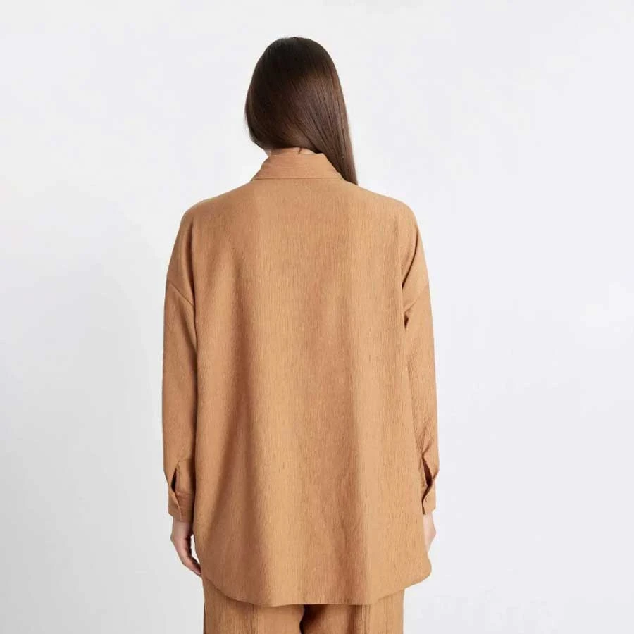 Relaxed-fit hijab tunic made from crinkle fabric, featuring long sleeves for modesty and a comfortable, stylish everyday look