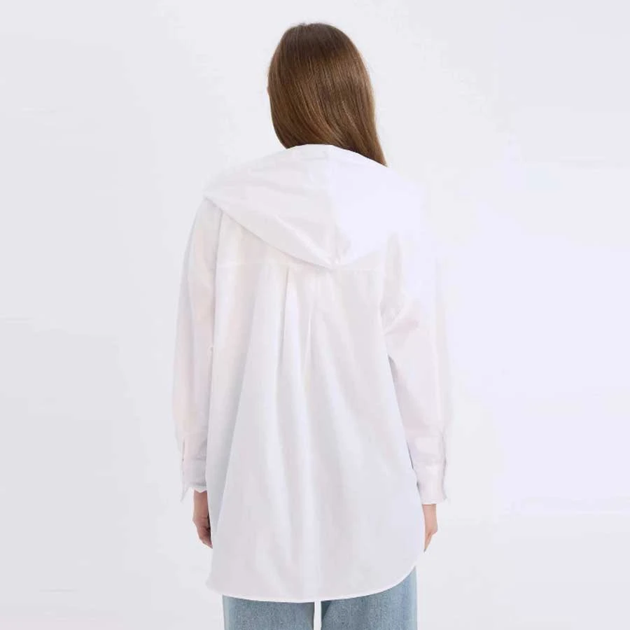 Defacto Relax Fit Hooded Basic Plain Poplin Long Sleeve White Hijab Shirt Tunic