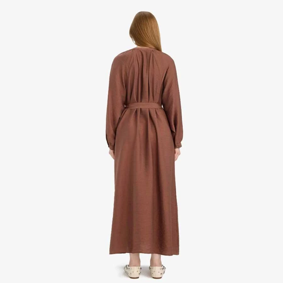 Relax fit long sleeve maxi dress with prevailing collar and belt detail, comfortable and stylish for everyday or formal wear