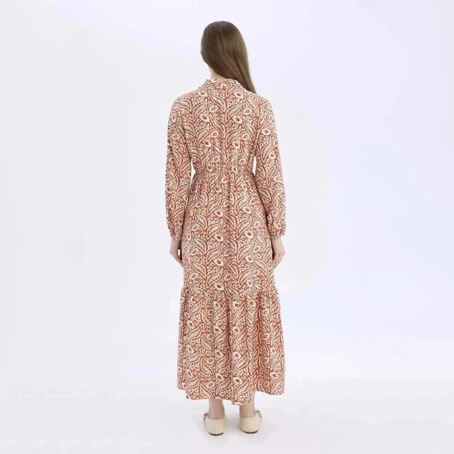 Defacto Shirt Collar Pattern Long Sleeve Maxi Dress