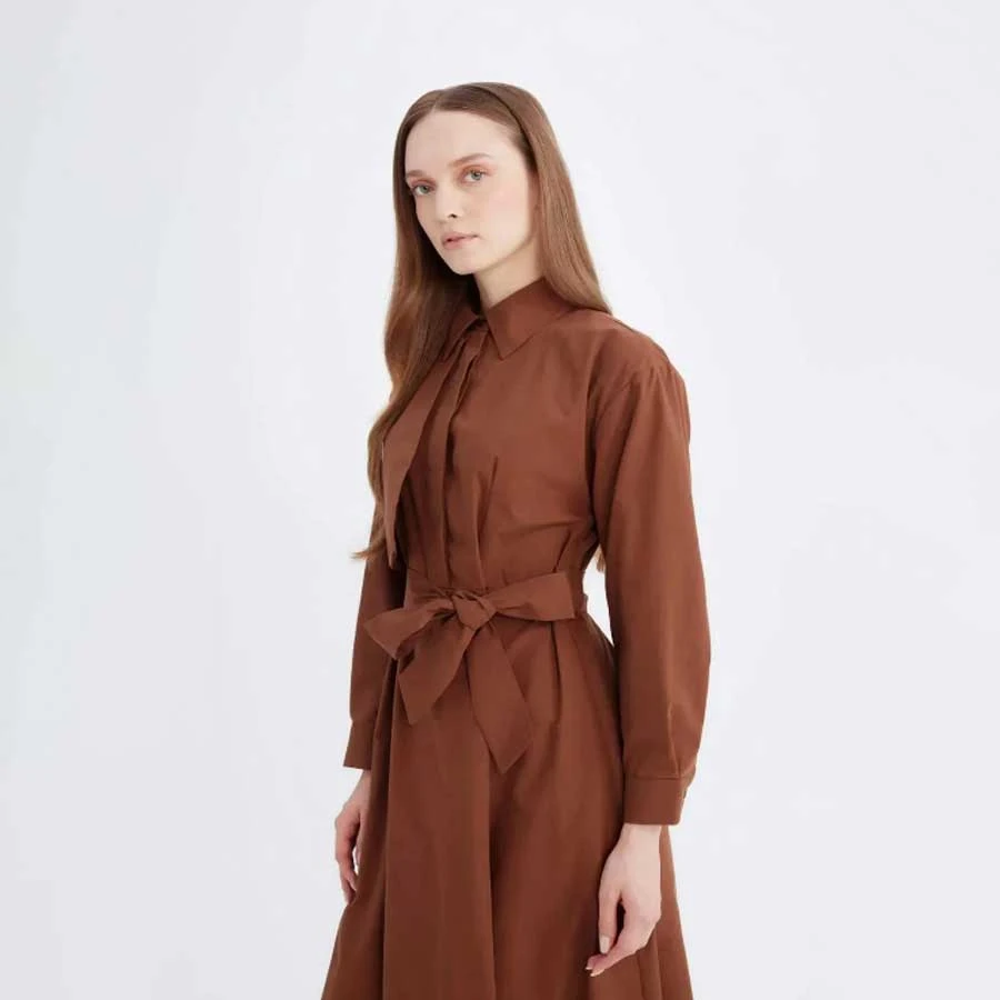 Long sleeve poplin dress with shirt collar, designed for a stylish and comfortable look suitable for everyday or formal occasions