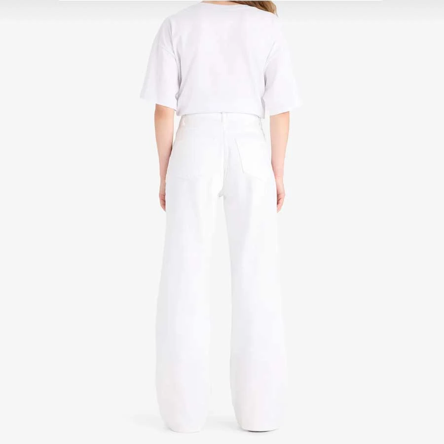 Stylish straight-leg white jeans with a wide fit and high waist, offering a clean, modern look. Perfect for casual and semi-formal outfits, especially in warm weather