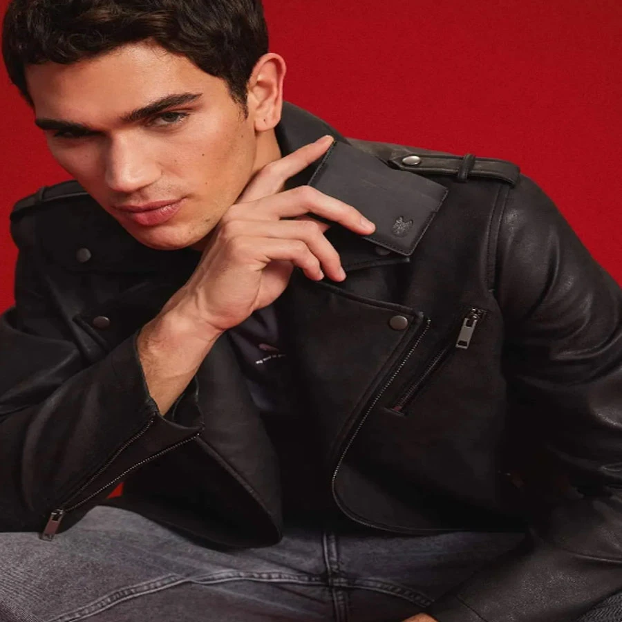 Water repellent faux leather coat jacket with shirt collar and zipper pocket