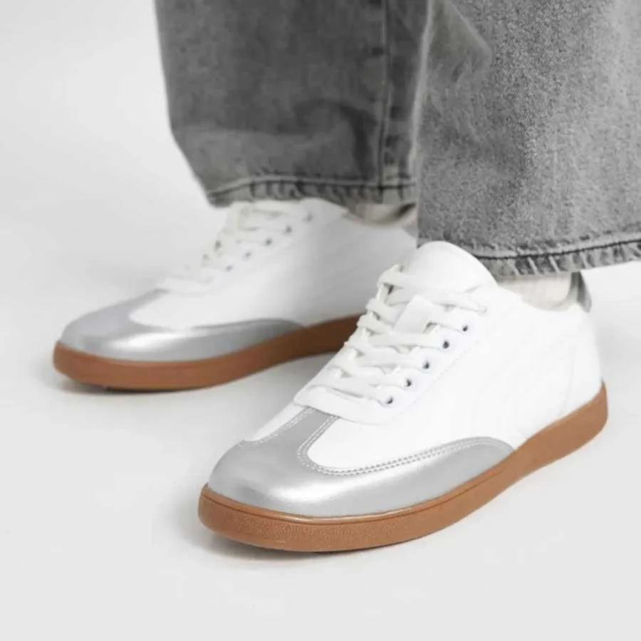 Defacto Women’s Flat Sole Lace-Up Faux Leather Sneakers