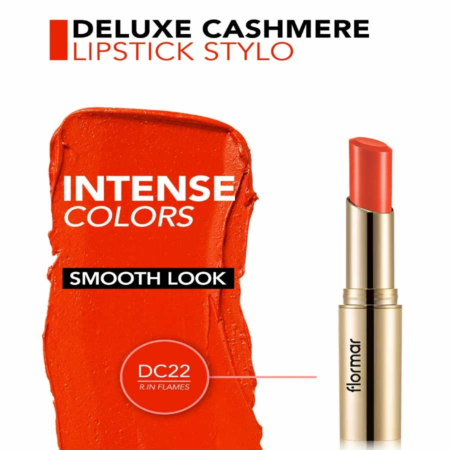 بينما يُضفي أحمر شفاه فلورمار ديلوكس كشمير ستايلو لمسة ناعمة على الشفاه بفضل ملمسه الناعم كالكشمير، يُعتني بالشفاه أيضًا بفضل خلاصة زهرة الأوركيد وزبدة الشيا.